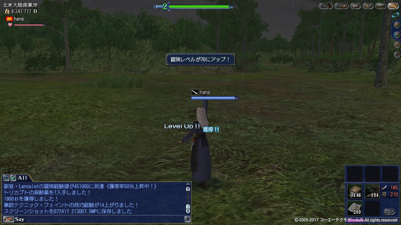 で、調達では微妙にレベルあがらなくて、陸戦でようやく70レベルになったー。