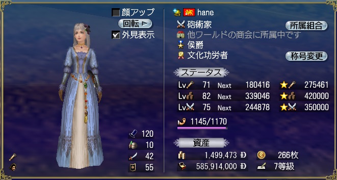 戦闘レベル75にあがった時点で、王立艦隊で爵位upしてたり。