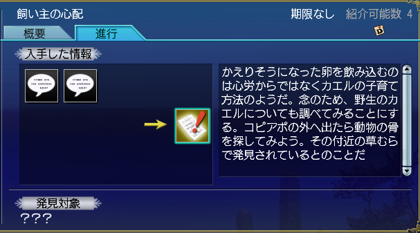 「飼い主の心配」(生物クエ)