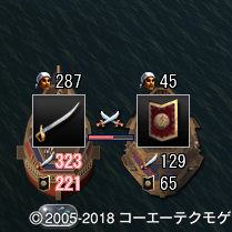 白兵のときの攻撃力300近くで、ジーベックの45人とかは1回の突撃で終わるので回転早くなったー。