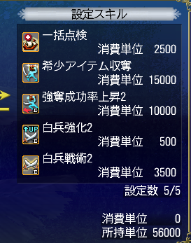 ■回転upのため白兵攻撃力は装備やスキルでなるべく上げたほうが効率up(ジーベック突撃1回目安)