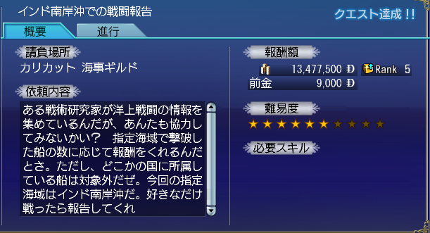 ■インド海域戦闘クエ(max)報告時取得経験値(西岸・南岸同じ)