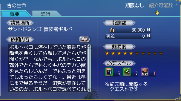 ポルトベロに釣り師で学術協会提出数増やしにいったついでに受けたクエ。