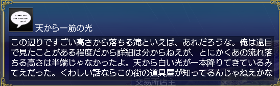 あと大航海時代データベース見たら、この滝クエは連続クエになっていて、今の所6クエある様子。