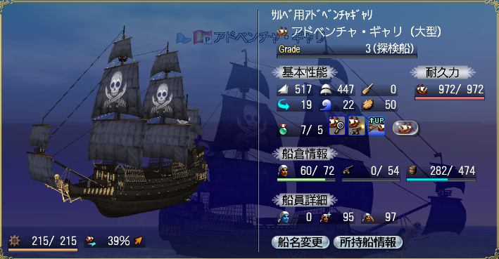造船キャンペーン開始前に、アドベンチャギャリ、帆maxになってればいいやの最低限強化終わっていたり。