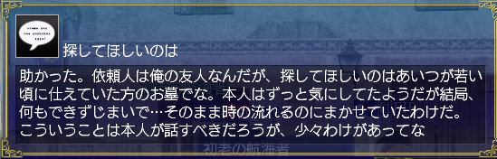匿名で依頼がきている。ある人の葬儀があったと聞いたからその墓を探してほしいらしい。変わった頼みではあるが、何か事情があるかもしれないな。