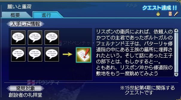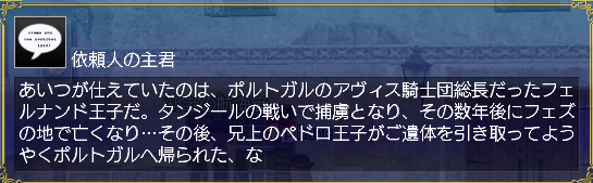 ジョゼエピソード、ポルトガル王族についての調査クエ、ボルジア家関連のクエが前提になってる。
