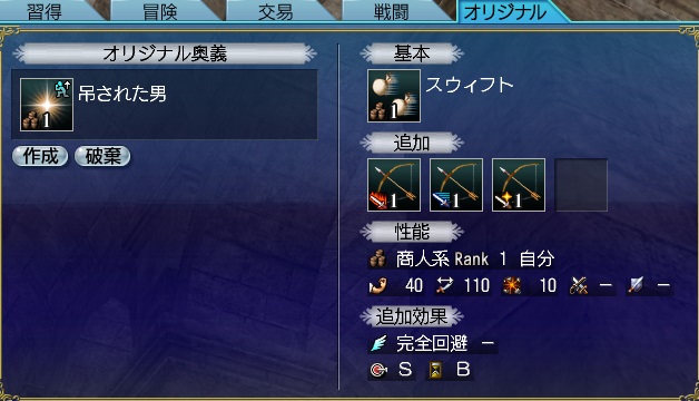オリジナル奥義は、完全回避のランク1ので作ってみたり。